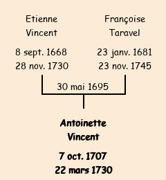 Mère : Françoise Taravel | Marraine : Antoinette Vincent (fille de Jean) |