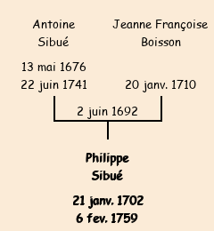 Philippe Sibué apparait dans le recensement de la population de 1716. |