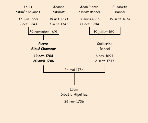 Pierre Sibué Chavonaz apparait dans la consigne des mâles de 1726. |