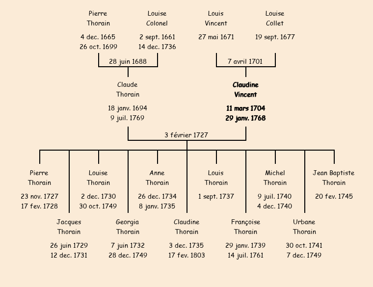 Mariée (22 ans) avec Claude Thorain (33 ans) le 3 février 1727 à Fontcouverte ![]() |
