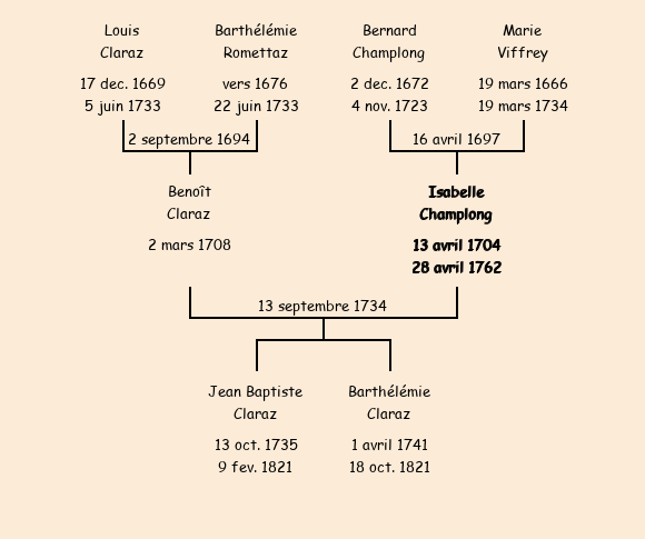 Mariée (30 ans) avec Benoît Claraz (26 ans) le 13 septembre 1734 à Fontcouverte ![]() |