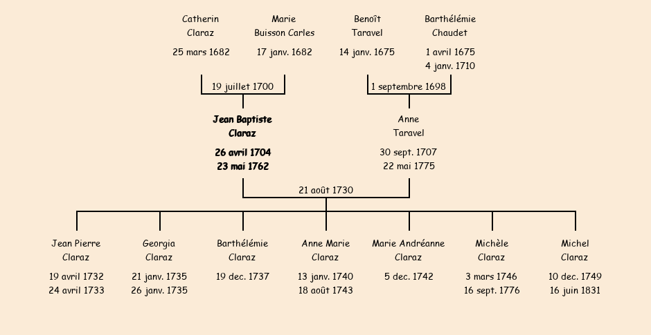 Jean Baptiste Claraz apparait dans le recensement des personnes de Fontcouverte et de leurs bestiaux de 1734. |