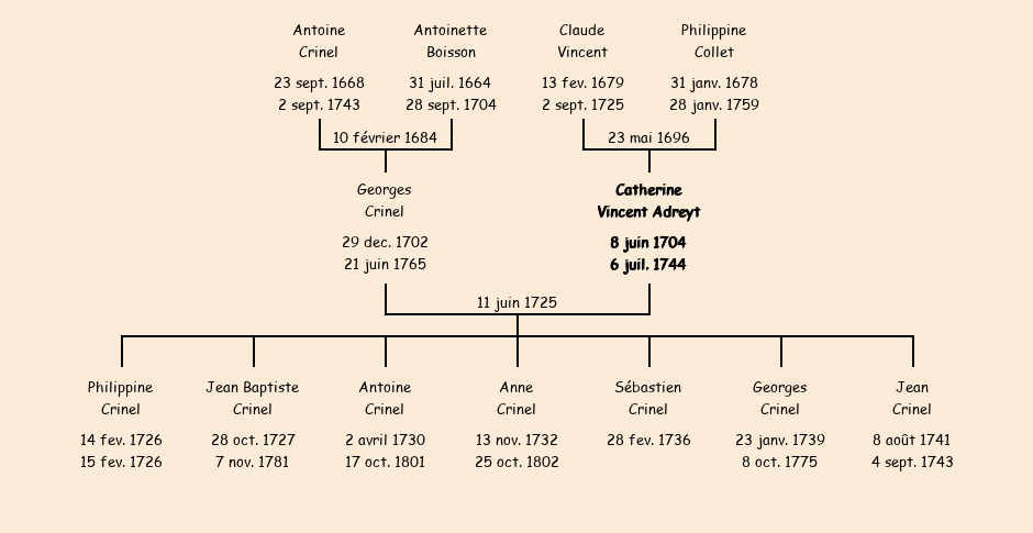 Mère : Philippine Gilbert Collet | Marraine : Catherine Viffrey (épouse de Michel Vincent Adreyt) |