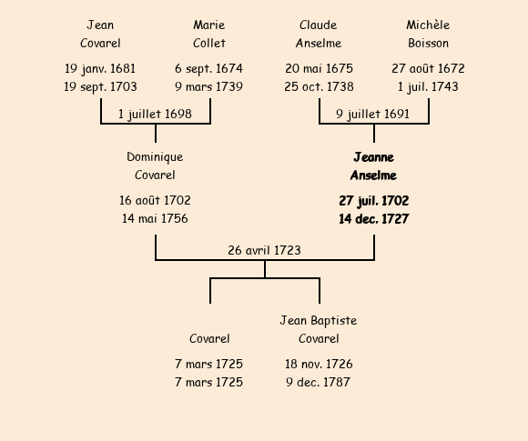 Mère : Michèle Boisson | Marraine : Jeanne Anselme (fille de Louis décédé) |