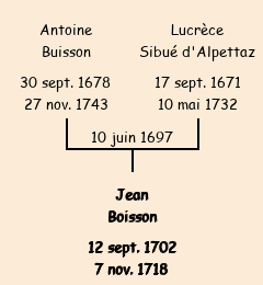 Père : Antoine Boisson | Parrain : Jean Sibué d'Alpettaz (fils de Georges décédé) |