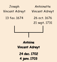 Père : Joseph Vincent Adreyt | Parrain : Antoine Vincent Adreyt |