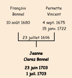 Mère : Pernette Vincent | Marraine : Marie Claraz Bonnel (fille de Pierre) |