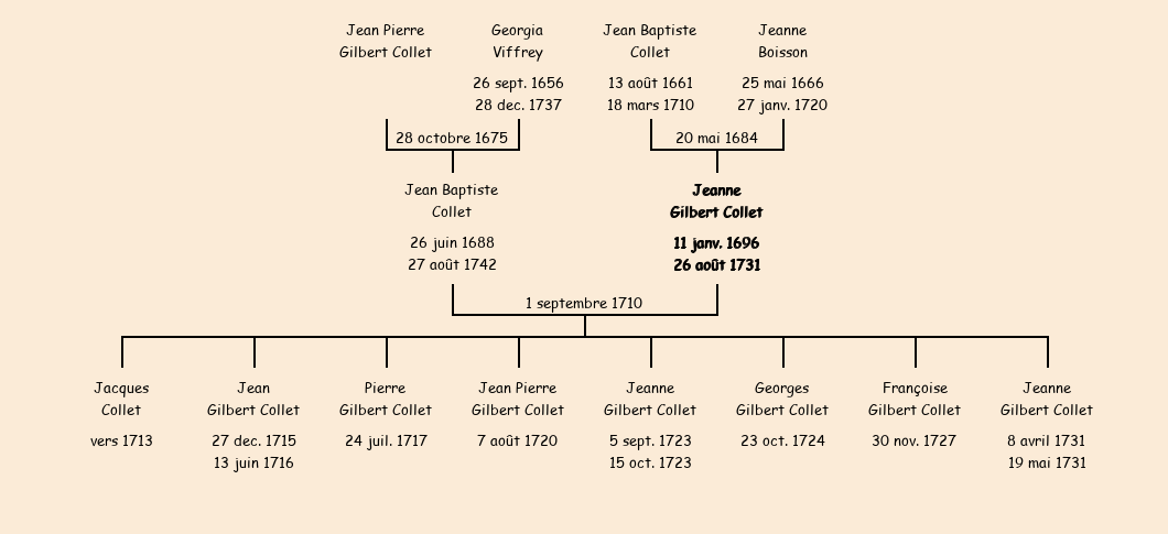 Jeanne Gilbert Collet apparait dans le recensement de la population de 1716. |