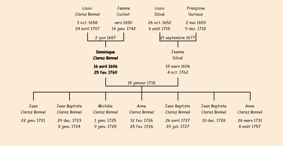 Dominique Claraz Bonnel apparait dans la consigne des mâles de 1713. |