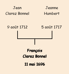 François Claraz Bonnel apparait dans la consigne des mâles de 1713. |
