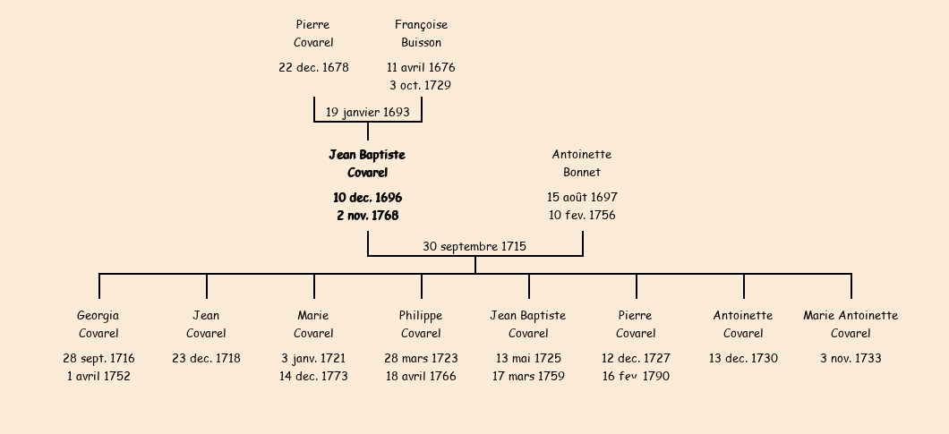 Jean Baptiste Covarel apparait dans le recensement de la population de 1716. |