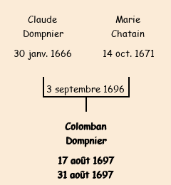 Père : Claude Dompnier | Parrain : Colomban Chatain (fils de Michel) |