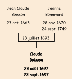 Père : Claude Boisson | Parrain : Claude Taravel (fils de Pierre décédé) |
