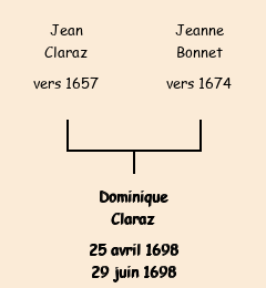 Née le 25 avril 1698 à Fontcouverte ![]() | Baptisée le 25 avril 1698 à Fontcouverte ![]() |