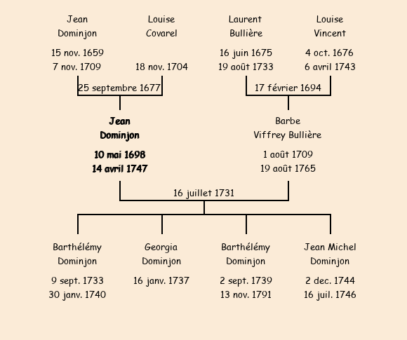 Jean Dominjon apparait dans le recensement de la population de 1716. |