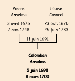 Père : Pierre Anselme | Parrain : Colomban Anselme (a signé) |