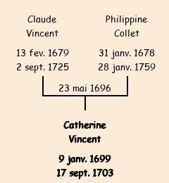 Mère : Philippine Gilbert Collet | Marraine : Catherine Viffrey (épouse du dit Michel Vincent) |
