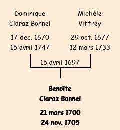 Dominique Claraz Bonnel (°1670 +1747) - 29 ans |