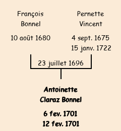 Père : François Claraz Bonnel | Parrain : Claude Claraz Bonnel (fils de Pierre) |