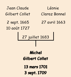 Père : Jean Claude Gilbert Collet | Parrain : Michel Claraz Bonnel (fils de Jean François) |