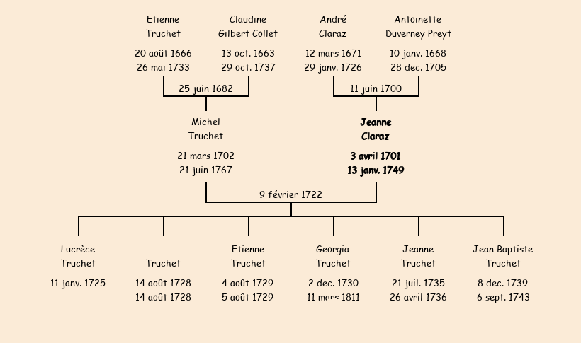 Jeanne Claraz apparait dans le recensement de la population de 1716. |