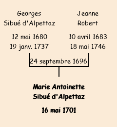 Marie Antoinette Sibué d'Alpettaz apparait dans le recensement de la population de 1716. |