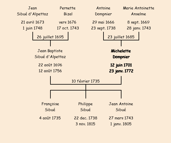Michelette Dompnier apparait dans le recensement de la population de 1716. |