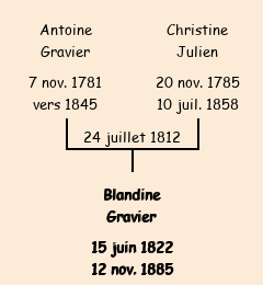 Blandine Gravier apparait dans le dénombrement de la population de 1881. |