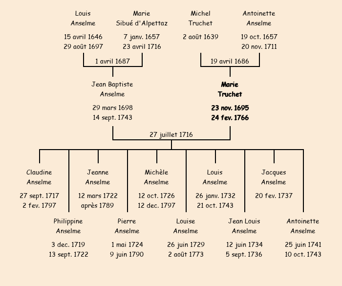 Marie Truchet apparait dans le recensement de la population de 1716. |