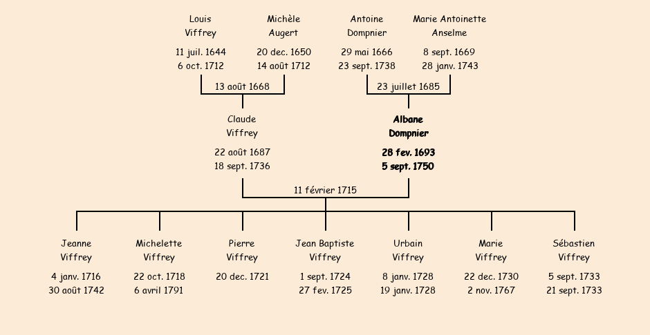 Albane Dompnier apparait dans le recensement de la population de 1716. |