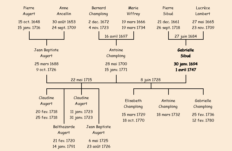Epouse : Gabrielle Sibué (veuve de Jean Baptiste Augert), fille de feu Pierre |