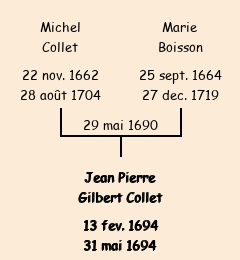 Mère : Marie Boisson | Marraine : Philippine Gilbert Collet (fille du parrain) |