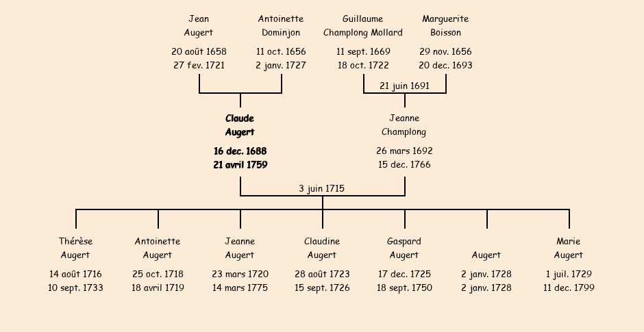 Claude Augert apparait dans le recensement de la population de 1716. |