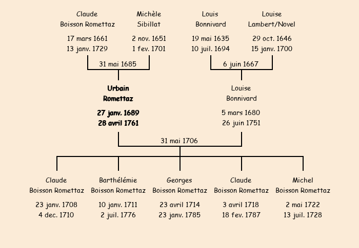 Père : Claude Romettaz | Parrain : Urbain Romettaz (fils de Gaspard) |