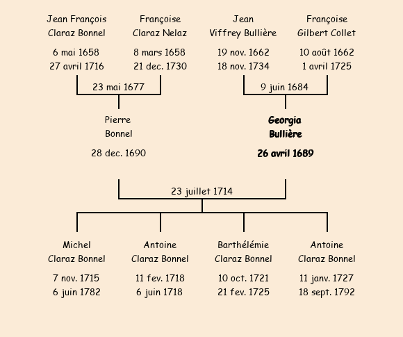 Georgia Bullière apparait dans le recensement de la population de 1716. |