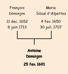 Antoine Dominjon apparait dans la consigne des mâles de 1713 (absent). |