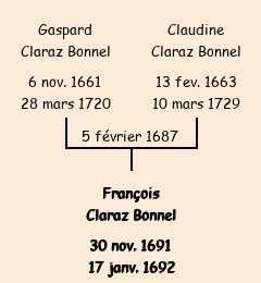 Père : Gaspard Claraz Bonnel | Parrain : François Bonnel (fils de Pierre décédé) |