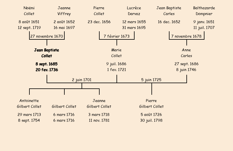 Jean Baptiste Collet apparait dans le recensement de la population de 1716. |