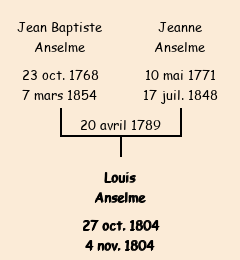 Mère : Jeanne Anselme, fille de François | Marraine : Marie Antoinette Anselme (fille de François) |