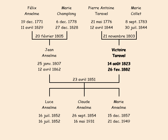 Epouse : Victoire Taravel (28 ans, a marqué), fille de feu Pierre Antoine et de feue Marie Collet |