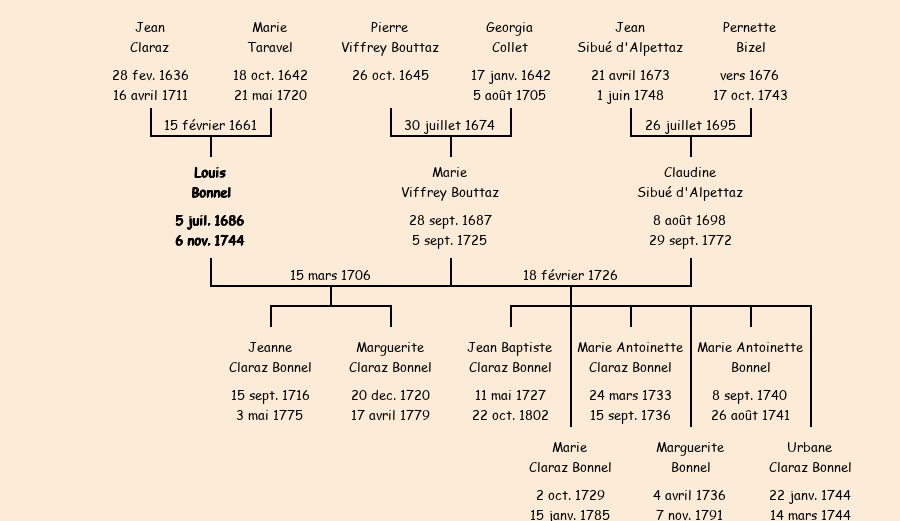 Epoux : Louis Claraz Bonnel (veuf de Marie Viffrey Bouttaz), fils de feu Jean |