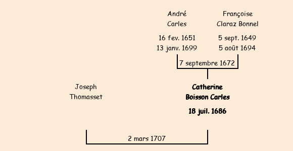 Mariée (20 ans) avec Joseph Thomasset le 2 mars 1707 à Fontcouverte ![]() |