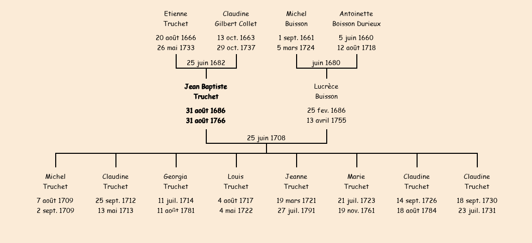 Père : Etienne Truchet, fils de Jean Baptiste | Parrain : Jean Baptiste Truchet |