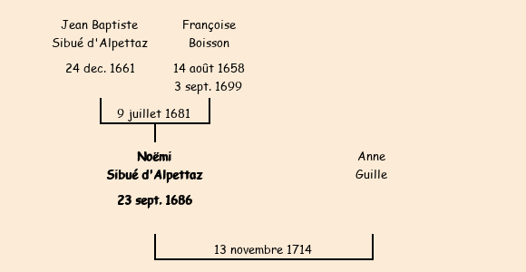 Père : Jean Baptiste Sibué d'Alpettaz | Parrain : Noëmi Buisson (fils de Jean Baptiste) |