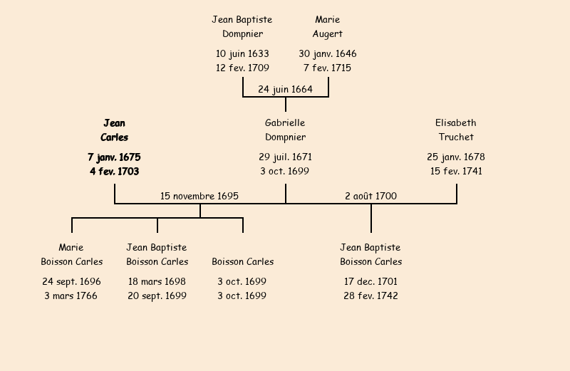 Acte de mariage de Jean Boisson Carles avec Gabrielle Dompnier le 15 novembre 1695