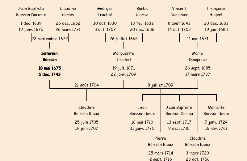 Saturnin Boisson apparait dans le recensement de la population de 1716. |
