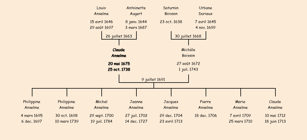 Claude Anselme apparait dans la consigne des mâles de 1713. |