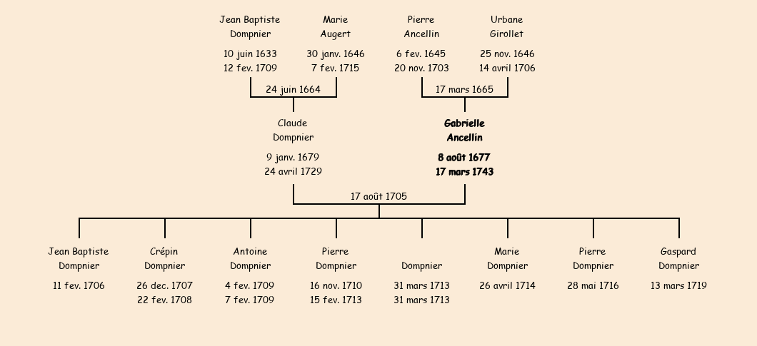 Gabrielle Ancellin apparait dans le recensement de la population de 1716. |