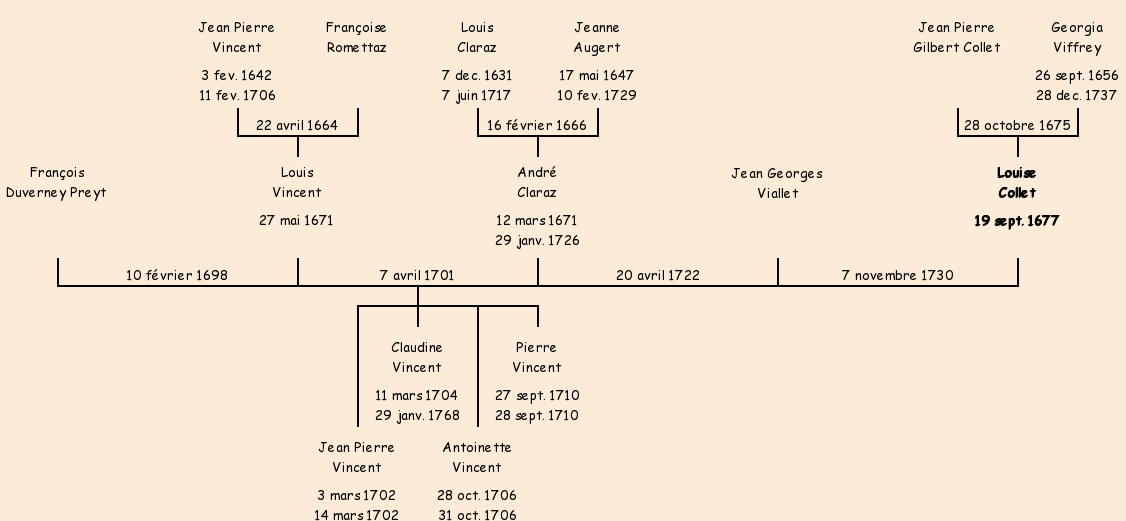 Epouse : Louise Gilbert Collet (veuve d'André Claraz), fille de feu Jean Pierre |