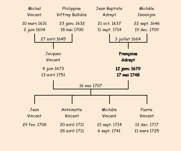 Epouse : Françoise Vincent Adreyt, fille de Jean Baptiste |